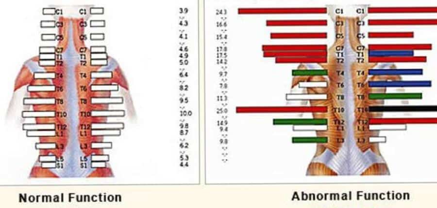 An sEMG scan allows Dr.Jessica to detect unusual stress patterns in motor nerves that contribute to improper posture, tension, and misalignment within the musculoskeletal system. When spinal misalignments exert pressure on the nerves, causing irritation, these nerves emit an absence of heat. When the thermography scan is applied along the patient’s back, it quantifies the heat emitted by these nerves. Subsequently, sensors are positioned on specific muscle points, allowing the scan to evaluate concurrent muscle tension as well. This technology enables her to quantify and chart areas of muscular imbalance, monitoring their evolution throughout the patients treatment.